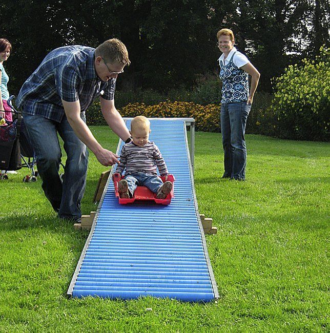 Ausgestattet mit großer Hüpfburg 54qm und mehr als 25 Spiel- und Spaßangeboten. Mit Etagen-Basketball, kleiner Jonglierschule, Balancierseil, Rasenspiele, Wurf- und Geschicklichkeitsangeboten und der 7m Rollenrutsche für die Kleinen.